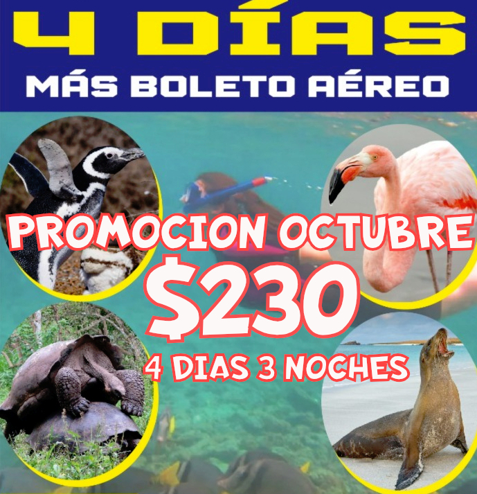 NUESTRO TOUR NO INCLUYE:  Boleto aereo a Baltra (Le ayudamos a buscar vuelos baratos a BALTRA) , Impuesto de entrada a Galapagos $ 30, tARJETA DE MIGRACION $ 20, Boletos de Bus Lobito del Aeropuerto de Baltra al Canal de Itabaca ida y vuelta $ 10, Equipo de snorkel $ 5 opcional / Habitacion sencilla costo adicional extra $ 50 / Bebidas alcoholicas, propinas, etc. (TOTAL IMPUESTOS  $ 65 ADULTOS / $50 MENORES 12 AÑOS)